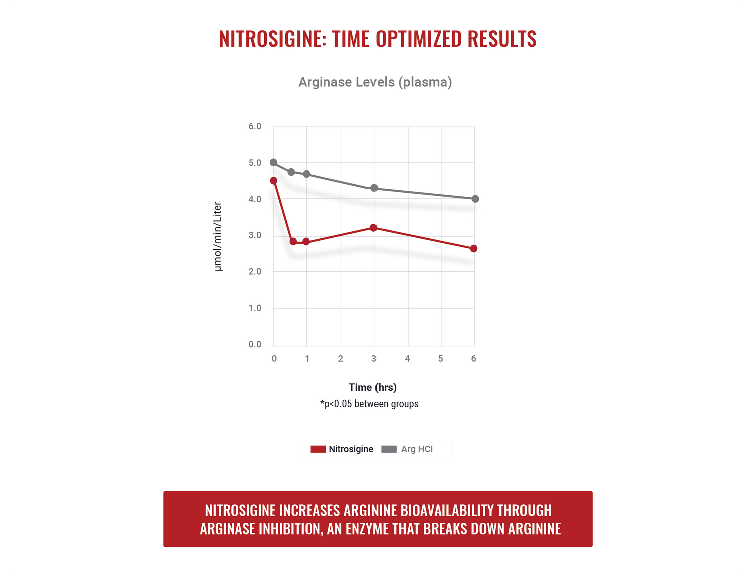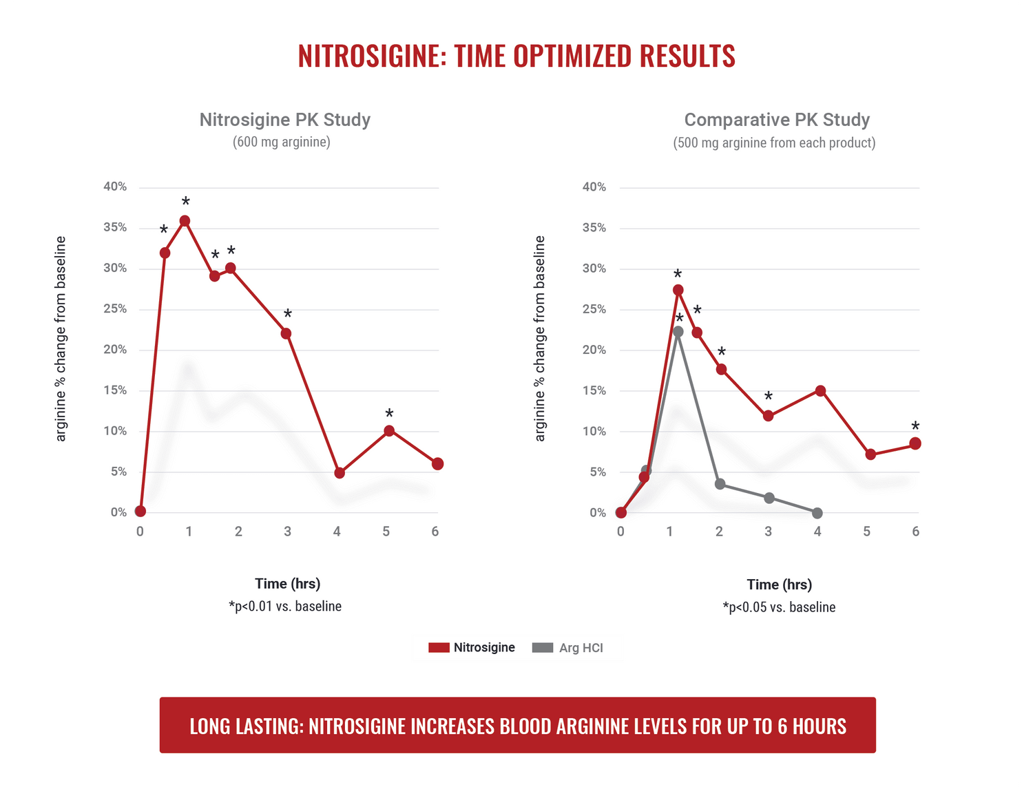 The unique complex of arginine and silicon in Nitrosigine unlocks powerful synergistic effects that offer enhanced benefits. Arginine contributes to boosting nitric oxide (NO) levels, which has been shown to be a key factor in generating greater blood flow and vasodilation in working muscles. Meanwhile, silicon contributes to blood flow by strengthening and improving the flexibility of arterial walls. Together, these ingredients offer powerful efficacious results compared to each ingredient alone. Nitrosigine increases blood levels of arginine for up to six hours and elevates blood levels of silicon with a single dose.